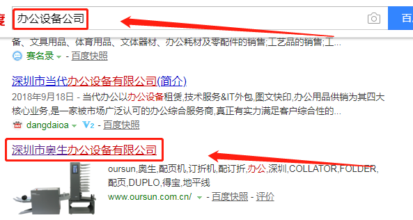 深圳市奧生辦公設備有限公司和我公司簽訂百度霸屏項目