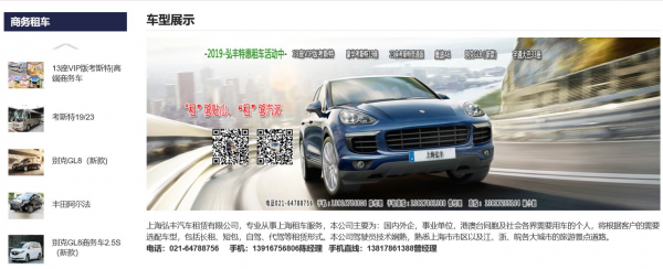 上海弘豐汽車租賃有限公司,專業從事上海租車服務,本公司主要為:國內外企,事業單位,港澳臺同胞及社會各界需要用車的個人。將根據客戶的需要選配車型,包括長租、短包,自駕、代駕等租賃形式。本公司駕駛員技術嫻熟,熟悉上海市市區以及江、浙、皖各大城市的旅游景點道路。本公司以顧客至上,這將是我們給您的承諾。 目前我們的主要業務是為個人和企業提供汽車租賃服務,我們本著以人為本的原則,大大簡化了車輛租賃手續。我們的目標是為您及您的企業提供完善的專業化服務,力爭使您的企業或個人形象連同我們的服務水平,業務拓展,更上一層樓...本汽車租賃公司立足上海,為打造汽車租賃品牌而努力。我們的口號是“一路為您”,我們伴您,在商務、旅游的征途中一路順風。感謝您光臨!本汽車租賃公司是一個專業團隊將竭誠為您服務。 主營:上海汽車租賃;上海商務車租賃;上海旅游客車租賃;上海婚車租賃;閔行汽車租賃;上海別克租賃;上海婚車租賃公司;上?;檐囎赓U價格;上海車輛租賃行情;上海汽車租賃咨詢;上海汽車租賃手續;上海金龍大巴租賃;上海45座大巴租賃;上海金龍大巴33座租賃;上海33座大巴租賃;上海汽車租賃公司;上海正規汽車租賃公司;上海婚車出租;上?;檐嚦鲎鈨r格;上海長途車租賃;自駕租車;自駕;上海租車;商務車;別克;別克商務車;租別克;租別克商務車;別克商務車出租;奧迪出租;上海租車;上海租車公司;上海包車;上海租車網;企業租車;公司租車;單位租車。