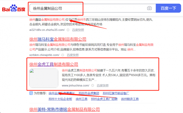 徐州金*工具制造有限公司選用我司企業金屬制品的網站優化產品,其SEO關鍵詞有金屬制品。定位清晰,打造網站的品牌力,從微信小程序開發到關鍵詞排名優化,再結合各種營銷模式,充分發掘網站的營銷功能。徐州金*工具制造有限公司成立于1956年,是經徐州市市場監督管理局審核的有資質的公司,其統一社會信用代碼:9132038**37042033Y。公司地址:江蘇省徐州市邳州市碾莊鎮鎮北街。