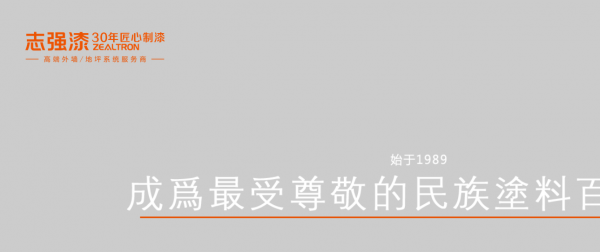 志強漆是中國建筑涂料的領先者,專業提供外墻涂料、地坪漆、交通設施等產品,是集研發、生產、銷售、設計、施工于一體的高端外墻/地坪系統服務商。志強漆創建于1989年,占地面積110畝,建筑面積48000平方米,下轄浙江志強涂料有限公司和擁有二級建筑裝修裝飾施工資質的浙江志強涂料裝飾有限公司。志強漆是中國建筑涂料的領先者,專業提供外墻涂料、地坪漆、交通設施等產品,是集研發、生產、銷售、設計、施工于一體的高端外墻/地坪系統服務商。