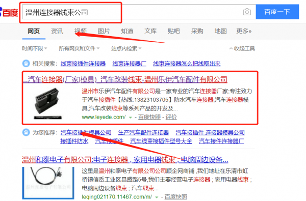 我們公司與溫州市樂伊汽車配件有限公司合作中,對這個公司所經營的連接器線束這個行業提供了搜索引擎優化推廣,與該公司的合作,更多的客戶讓我們公司為其提供搜索引擎優化推廣,通過每一次合作,我們公司不斷完善自己,同時希望合作伙伴在經營的路上越來越好。