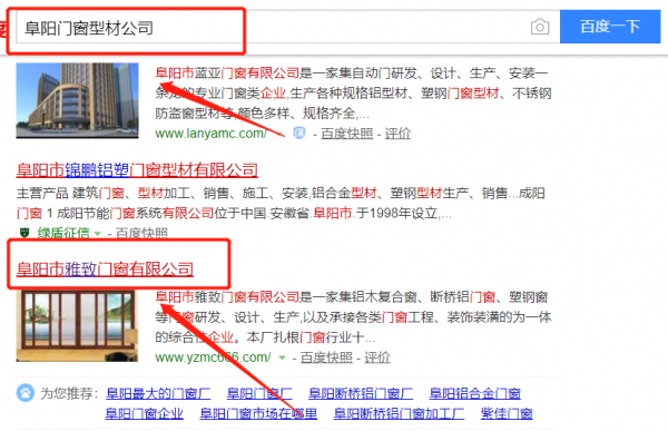 我們公司與阜陽市天桓門窗有限公司合作中,對這個公司所經營的門窗型材這個行業提供了快速排名,與該公司的合作,更多的客戶讓我們公司為其提供快速排名,通過每一次合作,我們公司不斷完善自己,同時希望合作伙伴在經營的路上越來越好。