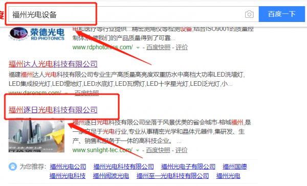 我們公司與福州逐日光電科技有限公司合作中,對這個(gè)公司所經(jīng)營的光電設(shè)備這個(gè)行業(yè)提供了百度快照排名,與該公司的合作,更多的客戶讓我們公司為其提供百度快照排名,通過每一次合作,我們公司不斷完善自己,同時(shí)希望合作伙伴在經(jīng)營的路上越來越好。