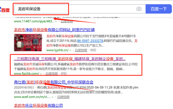 我們公司與福建省龍巖市*誠環(huán)保有限公司合作中,對這個(gè)公司所經(jīng)營的環(huán)保設(shè)備這個(gè)行業(yè)提供了百度快照排名,與該公司的合作,更多的客戶讓我們公司為其提供百度快照排名,通過每一次合作,我們公司不斷完善自己,同時(shí)希望合作伙伴在經(jīng)營的路上越來越好。