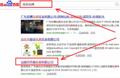汕頭市創新玩具實業有限公司選用我司企業玩具的網站優化產品,其SEO關鍵詞有玩具。按天計費,最快7天上詞,不到首頁不扣費。關鍵詞質量保證,白帽SEO符合百度算法,360、搜狗、移動端等排名效果免費贈送。汕頭市創新玩具實業有限公司成立于2015年,是經汕頭市市場監督管理局審核的有資質的公司,其統一社會信用代碼:9144051535125271X0。公司地址:汕頭市澄海區廣益街道龍